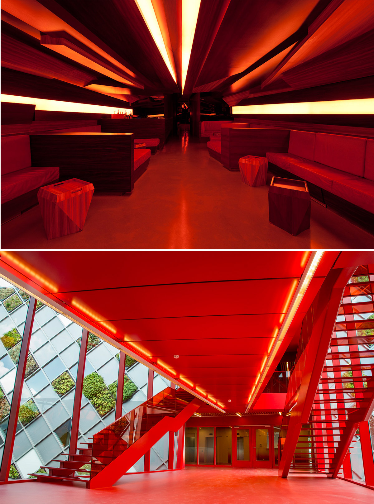 قرمز بسته به رنگ دقیق آن ، می تواند شور ، هیجان یا گرما را به شما نشان دهد ، اما می تواند با ترس یا خطر همراه باشد.اینکه رنگ و چیدمان فضا چگونه در کنار هم قرار گرفته اند،در درکی که از رنگ ایجاد می شود تاثیر دارد.درجه های تیره تر قرمز می توانند هیجان انگیز و جذاب باشد،در حالی که قرمزهای نئون روشن ، دوستانه و چشم نواز هستند. اگر همه فضا قرمز شود و ضعیف باشد، ممکن است احساس خفگی تحمیل کند ، اما اگر به طور موثری طراحی انجام شود می تواند یک تجربه منحصر به فرد در محیط ایجاد کند. لکه های رنگ قرمز در فضاهای غیر منتظره تر نیز می تواند روشی بسیار مؤثر برای جلب توجه افراد به اشیا یا عناصر خاص باشد.